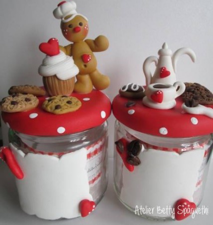 Página Inicial > Natal > Frascos de cozinha decorados em biscuit tema Natal ginger vermelho conjunto café e açucar 1.jpg