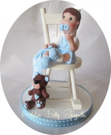 Página Inicial > Topo de Bolo Batizado/Comunhão > topo de bolo batizado comunhão personalizado infantil menino fofinho com cadeirinha de balanço de madeira 3.JPG